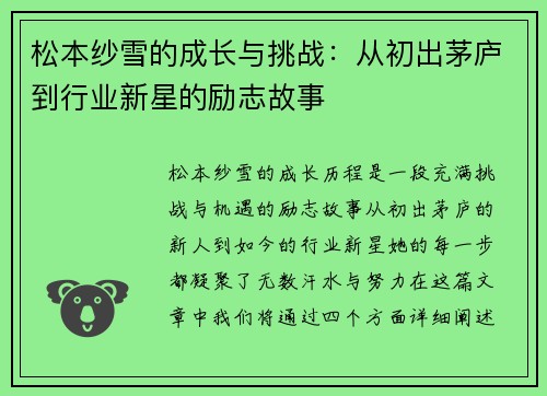 松本纱雪的成长与挑战:从初出茅庐到行业新星的励志故事